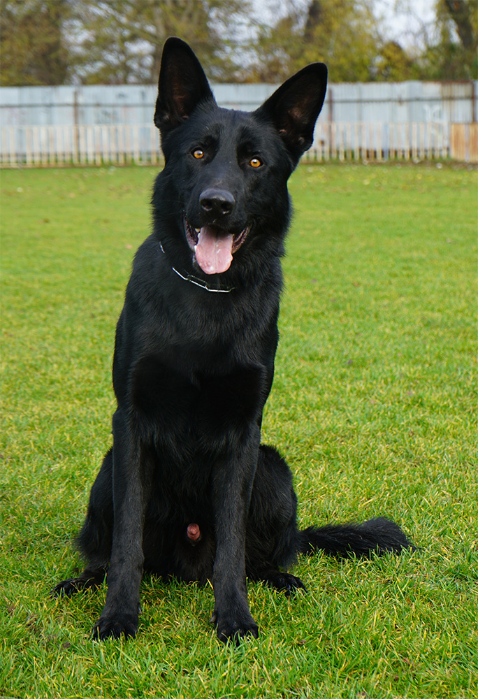DESCRIPTION: APOLO is 2 years old solid black large and strong male with excellent environmental behavior. APOLO has very nice bond with his handler. He is confident dog that is good in any sort of environment and also he doesn't have any problem with any type of surfaces. APOLO was raised in the family with 7 years old child. He is used to other animals. He was raised in the kennel and during summer he was taken inside the house. He has nice basic obedience. His protection is very good and real. He is fast and has nice hard bites. He is able to bite inside and outside of building. APOLO has very high ball drive and he is able to search inside and outside of buildings with great persistance using his excellent nose. APOLO has also nice pedigree full of hard and strong dogs. APOLO would be suitable as a dual purpose law enformcement dog or as a personal protection dog. |